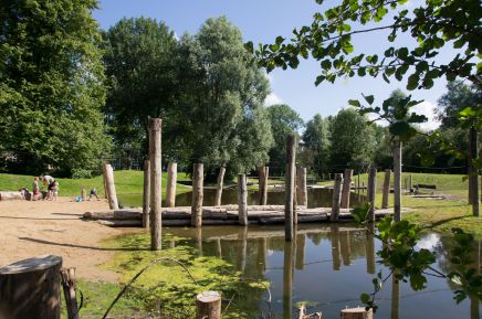 Nature playground Sloterpark is located in a sheltered corner of the Sloterpark and its size and the presence of an environmental education centre offers the opportunity to make, for once, a real natural playground. As many materials as possible are locally sourced.