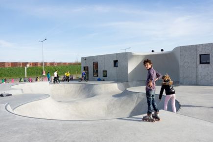 On a triangular plot, boxed in by a railwaytrack and a connecting road, Kavel K is situated. It is a skating, sports- and youth facility which attracts a wide range of different user groups. The public space and the building are designed as a unity; the facade and the skate-cradle melt together.